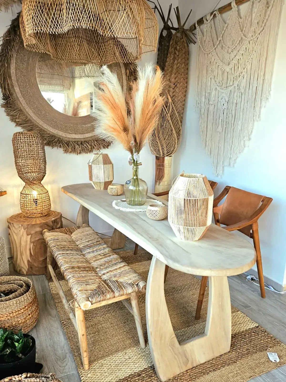 Create the cozy mood and atmospher with accents that add character and charm to your interior and exterior. like baskets, candles, carpets, wandhangers and Buddha's